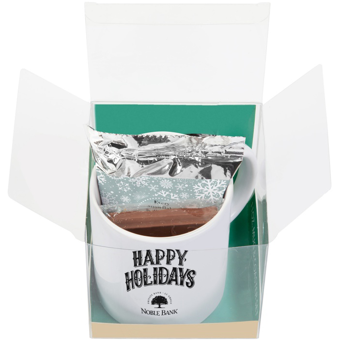Model: CMF900 Cookie/Cocoa Gift Set Product Description This is a super sweet gift set! Gift set comes with 11 oz. ceramic mug, a chocolate cookie and a hot chocolate packet. Perfect combination of goodies packaged together in a acetate box. Price includes one color, one location imprint. Size: 4"h x 4"w x 4"d Imprint Area: 3"h x 3"w Request A Virtual Proof Choose Quantity View Price Breaks Quantity Price 72 $17.99 144 $16.87 288 $15.74 576 $14.62 Enter quantity or drag slider. Minimum quantity is 72. Quantity: Price Each $17.99 Setup Charge: $90.00 Subtotal $1,385.28 Savings: $ over minimum qty pricing Choose Your Quantity Quantity Price 72 $17.99 144 $16.87 288 $15.74 576 $14.62 Standard Production Time: 7 business days Select Delivery Date Enter ZIP Code Apply Loading... Choose a Shipping Method -- Loading Shipping Prices -- Customize it! Upload Your Art Now Or Send it Later. Select Imprint Color(s) Back to Edit Product Color And Quantity Where on the item should we print your design? 3" x 3" Available print design areas 3" x 3" What imprint Color(s) would you like? (Maximum # of Imprint Colors: 1) Black White Metallic Silver Metallic Gold Metallic Copper PMS 021 Orange PMS 032 PMS 185 Scarlet Red Magenta Rubine Red Burgundy Purple Violet PMS 072 Reflex Blue Process Blue Teal PMS 4645 PMS 469 Process Yellow Pantone Yellow PMS 109 Dark Yellow Pantone Purple Medium Blue Pantone Blue Pantone Green Emerald Green PMS 347 Forest Green Black White Metallic Silver Metallic Gold Metallic Copper PMS 021 Orange PMS 032 PMS 185 Scarlet Red Magenta Rubine Red Burgundy Purple Violet PMS 072 Reflex Blue Process Blue Teal PMS 4645 PMS 469 Process Yellow Pantone Yellow PMS 109 Dark Yellow Pantone Purple Medium Blue Pantone Blue Pantone Green Emerald Green PMS 347 Forest Green Quantity: 72 Add Your Artwork Add Artwork Add Now Send After Checkout Don’t have artwork? That’s ok! Artwork is not required to start a job. Simply skip this step and email us artwork later (helpdesk@claytonkendall.com). If you need assistance with your art, our designers can help with that too! Will I be able to approve my design before it goes into print? Yes! You will receive a digital mock-up of your artwork on this item within a few hours of placing your order. We will send your order into production only after you approve the mock-up. Only Image Aa Only Text Aa Text/Image Contact Us Enter Your Text Choose file Uploading logo. Please wait... Personalize your design by adding text and customizing its shape with a curve. Upload your logo to give it a professional touch, and combine these elements to create a one-of-a-kind design that’s uniquely yours. Open Product Designer Don’t have artwork? That’s ok! Artwork is not required to start a job. Simply skip this step and email us artwork later. If you need assistance with your art, our designers can help with that too! Will I be able to approve my design before it goes into print? Yes! You will receive a digital mock-up of your artwork on this item within a few hours of placing your order. We will send your order into production only after you approve the mock-up. Free art proof will be emailed with every order within one business day Total (loading...) qty x Set Up Shipping Cost Rush Charge Custom Fields Hazmat Fee Estimate arrival Savings Add to Cart Updating Price...
