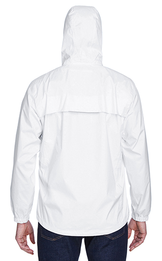 Fabric: 100% polyester taffeta in sleeves . 2,000 mm waterproofness/2,000 g breathability. SHELL: 100% polyester variegated ripstop, 3.5 oz./yd2/117 gsm. LINING: 100% fine mesh polyester at hood and body. Features: Fully seam-sealed waterproof shell. Storm flap with snap closure at bottomand chin guard. Center front autolock zipper with reflective toggle. Roll-away adjustable hood. Underarm and back vent system for added breathability. Lower front concealed zippered pockets with reflective toggles. Elasticized cuffs. Adjustable shockcord at hood and drop back hem. Reflective piping at shoulder yoke and center back yoke. Your price includes embroidery on the left chest.