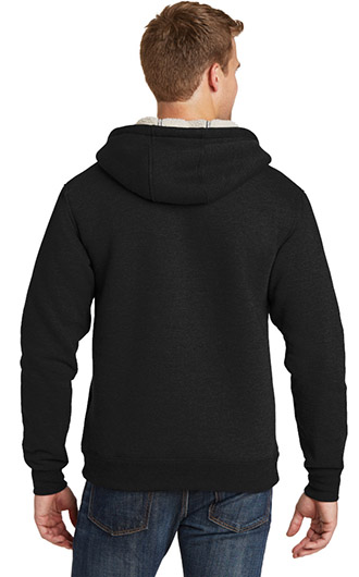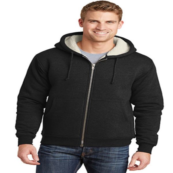 For chilly days on the jobsite, nothing beats this hardworking fleece jacket. The DWR-finished outer layer and hood resist light rain, while the sherpa fleece lining keeps you warm. This versatile, heavy duty jacket can be worn fall through spring. 19.8-ounce, 53/47 cotton/poly fleece bonded to 100% polyester sherpa fleece with DWR finish. 2-ounce polyfill in sleeves for added warmth. 3-panel hood with dyed-to-match drawcord. Twill-taped neck. Heavy-duty metal zipper. Rib knit cuffs and hem. Front pouch pockets. Your price includes embroidery on the left chest.