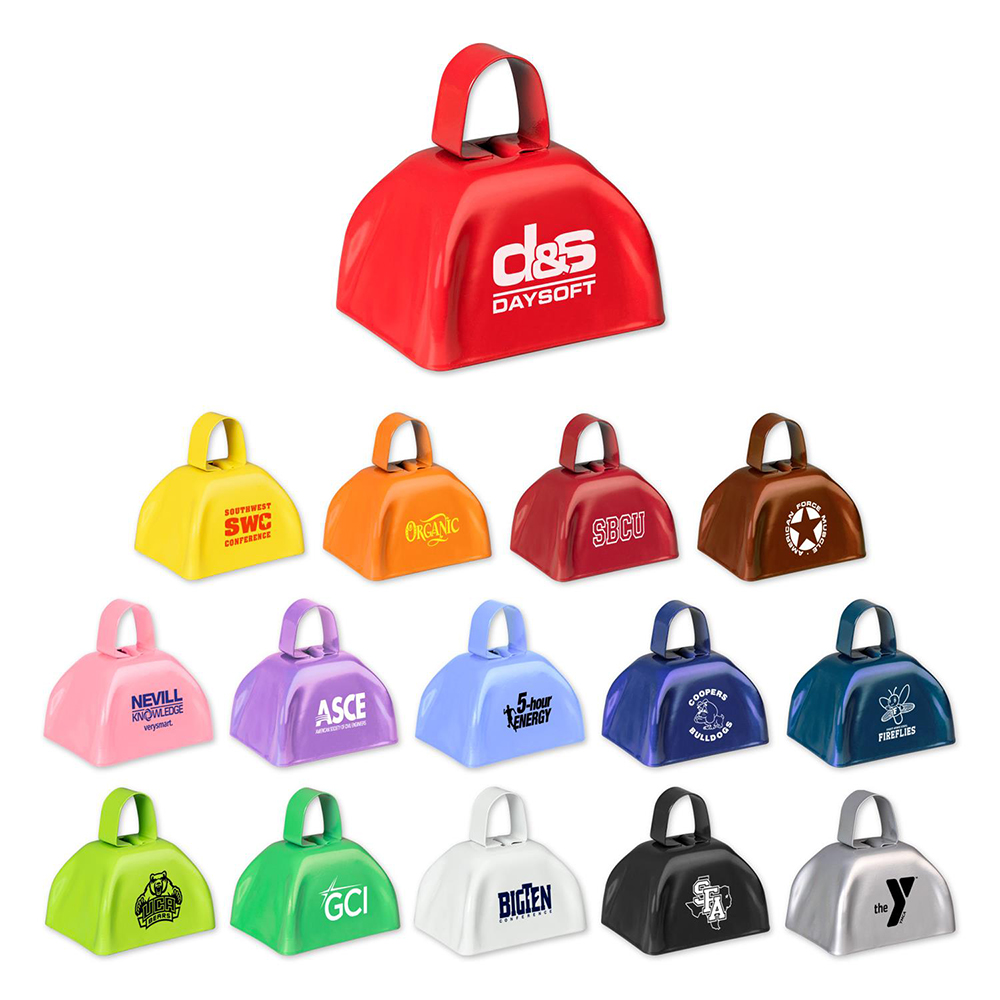 Give your cause a new voice with this three inch cowbell. Customized with your organization's name and logo, it's the perfect way to promote team pride, concert events, and any other festivity that you want to be seen and heard. Give this unique cowbell a ring during a game and at promotional events; whenever you want to make a little noise. Make sure your company's name always rings a bell.
