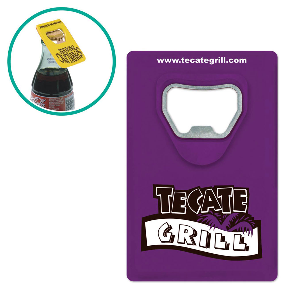 Model: 1000C Credit Card Bottles Openers Product Description Credit card design easily fits into wallets, pockets or purses. A stainless steel insert tackles the toughest opening jobs. Price includes one color imprint, one location.We do offer PMS matching for $50 please call for details. Size: 3.63"h x 2.13"w x 0.19"d Imprint Area: 1.88"h x 1.88"w Request A Virtual Proof Request A Free Sample Select Color Red Green Orange White Black Blue Dark Green Translucent Blue Translucent Red Dark Blue Translucent Frost Choose Quantity View Price Breaks Quantity Price 250 $1.43 500 $1.34 1000 $1.25 2500 $1.21 5000 $1.16 Enter quantity or drag slider. Minimum quantity is 250. Quantity: Price Each $1.43 Setup Charge: $55.00 Subtotal $412.50 Savings: $ over minimum qty pricing Choose Your Quantity Quantity Price 250 $1.43 500 $1.34 1000 $1.25 2500 $1.21 5000 $1.16 Standard Production Time: 6 business days Select Delivery Date Enter ZIP Code Apply Loading... Choose a Shipping Method -- Loading Shipping Prices -- Customize it! Upload Your Art Now Or Send it Later. Select Imprint Color(s) Back to Edit Product Color And Quantity Magnetic Backing -- Select Magnetic Backing -- Yes +$0.10 No * Where on the item should we print your design? 1.88" x 1.88" Available print design areas 1.88" x 1.88" What imprint Color(s) would you like? (Maximum # of Imprint Colors: 3) White Black Metallic Gold 872 Metallic Silver 877 Ivory PMS 7527 PMS Cool Gray 10 PMS 123 PMS 166 PMS 186 PMS 202 PMS 259 PMS 286 PMS 289 Process Blue PMS 343 PMS 348 PMS 3278 PMS 476 PMS 189 Neon Pink White Black Metallic Gold 872 Metallic Silver 877 Ivory PMS 7527 PMS Cool Gray 10 PMS 123 PMS 166 PMS 186 PMS 202 PMS 259 PMS 286 PMS 289 Process Blue PMS 343 PMS 348 PMS 3278 PMS 476 PMS 189 Neon Pink Add Additional Imprint Color Product Color: Select product color Quantity: 250 Add Your Artwork Add Artwork Add Now Send After Checkout Don’t have artwork? That’s ok! Artwork is not required to start a job. Simply skip this step and email us artwork later (helpdesk@claytonkendall.com). If you need assistance with your art, our designers can help with that too! Will I be able to approve my design before it goes into print? Yes! You will receive a digital mock-up of your artwork on this item within a few hours of placing your order. We will send your order into production only after you approve the mock-up. Only Image Aa Only Text Aa Text/Image Contact Us Enter Your Text Choose file Uploading logo. Please wait... Personalize your design by adding text and customizing its shape with a curve. Upload your logo to give it a professional touch, and combine these elements to create a one-of-a-kind design that’s uniquely yours. Open Product Designer Don’t have artwork? That’s ok! Artwork is not required to start a job. Simply skip this step and email us artwork later. If you need assistance with your art, our designers can help with that too! Will I be able to approve my design before it goes into print? Yes! You will receive a digital mock-up of your artwork on this item within a few hours of placing your order. We will send your order into production only after you approve the mock-up. Free art proof will be emailed with every order within one business day Total (loading...) qty x Set Up Shipping Cost Rush Charge Custom Fields Hazmat Fee Estimate arrival Savings Add to Cart Updating Price...