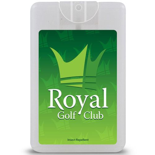 All natural DEET free insect repellent credit card style container. This product can be used in the toughest environments without risking headache, fatigue, muscle pain and other side effects common to deet based products. Our deet Free Insect Repellent formula is safe to use on children. Insect repellent provides you with the most effective chemical free way to repel mosquitoes, ticks, flies, gnats and no-see-ums. 0.66 oz/20 ml in translucent frosted credit card style container which includes a one color direct print or a full color process decal for your retail look. Ingredients: SDA-Alcohol, Purified Water, Litsea Cubeba, Melissa, Citronella Oil, Peppermint Oil, Lemongrass Extracts. DEET FREE. Oz Capacity: 0.68 oz./20 ml. Price includes 1 color imprint.