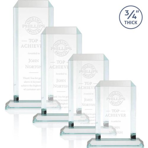 The Dalton Clear Crystal Award features a thick 3/4" tower with mitered edges all around that create a sparkling frame for your message of recognition. Available with your choice of 8 distinct and vivid colored bases, the Dalton award radiates light throughout the room and showcases your special achievement. Price includes deep etch.