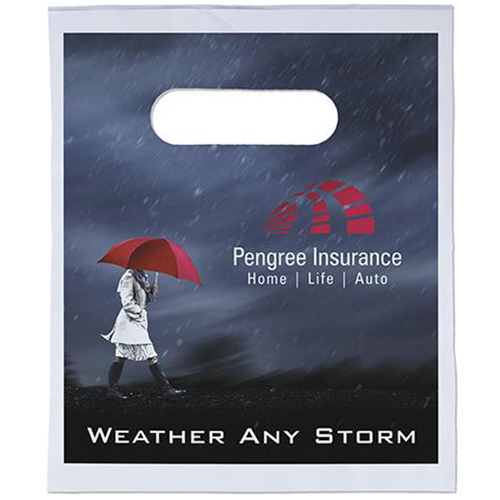 Showcase your artwork with digital full-color imprints on our 2.0 mil white plastic bags. These recyclable bags feature the option of 2-sided imprints, as well as non-reinforced die cut handles and no gusset. Available in multiple sizes.