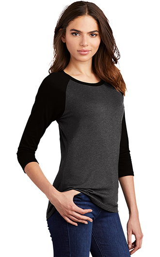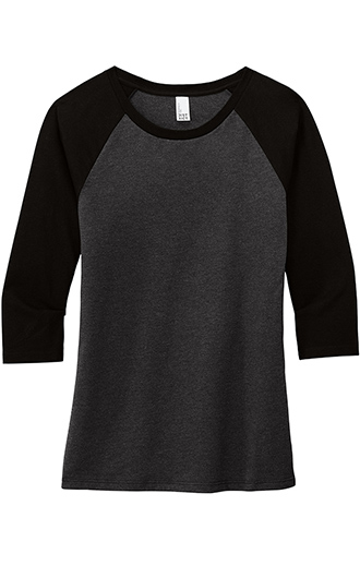 Model: DM136LRI District Women's Raglan Tri 3/4-Slv Product Description A classic raglan perfectly created with tri-blend yarns. 4.5-ounce, 50/25/25 poly/ring spun combed cotton/rayon, 32 singles. Tear-away label. Back neck tape. 1x1 rib knit neck. Price includes a one color imprint on left chest. Size: 0.07"h x 4.49"w x 6.4"d Imprint Area: 4"h x 4"w Request A Virtual Proof Select Color Black/White Black Frost/Grey Frost Black/Black Frost Fuchsia Frost/Grey Frost Grey Frost/White Navy Frost/Grey Frost Purple Frost/Grey Frost Red Frost/Grey Frost Royal Frost/Grey Frost Choose Quantity View Price Breaks Quantity Price 12 $13.09 24 $12.32 48 $11.55 72 $10.78 144 $10.40 288 $10.01 Size Chart Enter quantity or drag slider. Minimum quantity is 12. XS S M L XL 2XL +$2.00 3XL +$4.00 4XL +$6.00 Quantity: Price Each $13.09 Setup Charge: $50.00 Subtotal $207.08 Savings: $ over minimum qty pricing Choose Your Quantity Quantity Price 12 $13.09 24 $12.32 48 $11.55 72 $10.78 144 $10.40 288 $10.01 Standard Production Time: 7 business days Select Delivery Date Enter ZIP Code Apply Loading... Choose a Shipping Method -- Loading Shipping Prices -- Customize it! Upload Your Art Now Or Send it Later. Select Imprint Location and Color(s) Back to Edit Product Color And Quantity Where on the item should we print your design? Left Chest Full Front Full Back Left Sleeve 4" x 4" Available print design areas Left Chest Full Front Full Back Left Sleeve 4" x 4" What imprint Color(s) would you like? (Maximum # of Imprint Colors: 5) White Tan Medium Brown Sienna Brown Violet Purple Lilac Navy Blue Royal Blue Carolina Blue Teal Kelly Green Forest Green Olive Green Gray Black Lemon Yellow Golden Yellow Vegas Gold Citris Orange True Orange Burnt Orange Bright Red Scarlet Red Burgundy Hot Pink Ribbon Pink Pastel Pink White Tan Medium Brown Sienna Brown Violet Purple Lilac Navy Blue Royal Blue Carolina Blue Teal Kelly Green Forest Green Olive Green Gray Black Lemon Yellow Golden Yellow Vegas Gold Citris Orange True Orange Burnt Orange Bright Red Scarlet Red Burgundy Hot Pink Ribbon Pink Pastel Pink Add Additional Imprint Color Add Additional Imprint Location Product Color: Select product color Quantity: 12 Add Your Artwork Add Artwork Add Now Send After Checkout Don’t have artwork? That’s ok! Artwork is not required to start a job. Simply skip this step and email us artwork later (helpdesk@claytonkendall.com). If you need assistance with your art, our designers can help with that too! Will I be able to approve my design before it goes into print? Yes! You will receive a digital mock-up of your artwork on this item within a few hours of placing your order. We will send your order into production only after you approve the mock-up. Only Image Aa Only Text Aa Text/Image Designer Contact Us Enter Your Text Choose file Uploading logo. Please wait... Personalize your design by adding text and customizing its shape with a curve. Upload your logo to give it a professional touch, and combine these elements to create a one-of-a-kind design that’s uniquely yours. Open Product Designer Don’t have artwork? That’s ok! Artwork is not required to start a job. Simply skip this step and email us artwork later. If you need assistance with your art, our designers can help with that too! Will I be able to approve my design before it goes into print? Yes! You will receive a digital mock-up of your artwork on this item within a few hours of placing your order. We will send your order into production only after you approve the mock-up. Free art proof will be emailed with every order within one business day Total (loading...) qty x Set Up Shipping Cost Rush Charge Custom Fields Hazmat Fee Estimate arrival Savings Add to Cart Updating Price...