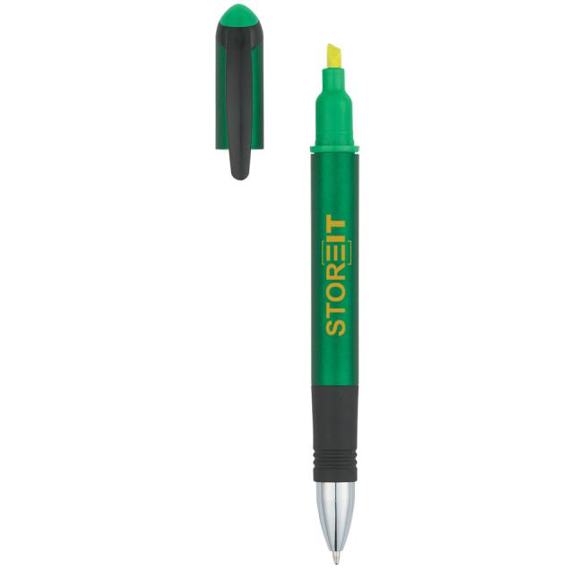 Imprint your logo on the promotional ballpoint pen with black ink. This pen is designed with chisel tip highlighter and rubber grip for writing comfort and control. Price includes one color imprint, one location. Get a free art proof that will be emailed with every order within one business day. Made at 5.5 inches - 0.03 lbs. with imprint dimensions of 1.75x0.75 in. Customized pen with silkscreen imprinting method. Five choices of imprinting barrel color.