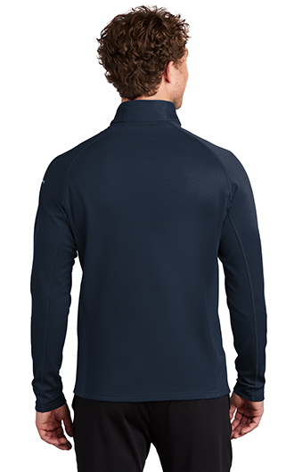 Smooth-faced fleece with a subtle grey print gives this 1/2-zip a sleek performance look. Reverse coil zipper, open cuffs and an open hem. Welded zippered chest pocket, contrast Eddie Bauer heat transfer logo on left sleeve. Made of 7.7-ounce, 95/5 poly/spandex. Price includes embroidery up to 5k stitches.