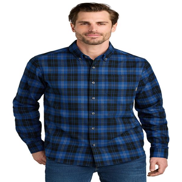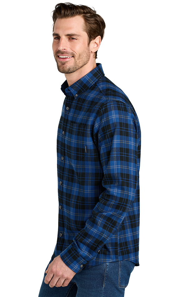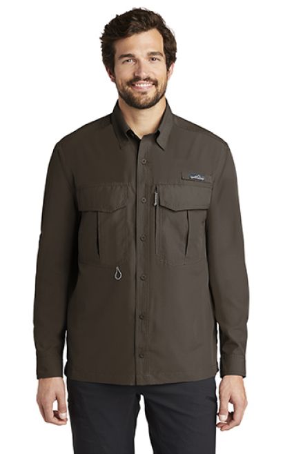 This iconic shirt embodies the heritage of adventure whether you're at home or in the wilderness. Brushed on both sides for unmatched softness, this shirt features a button-down collar, faux horn signature logo buttons, a mitered left chest pocket and mitered cuffs. A woven Eddie Bauer logo is at left chest pocket hem. Made of 5.9-ounce, 100% cotton herringbone flannel. Price includes embroidery.