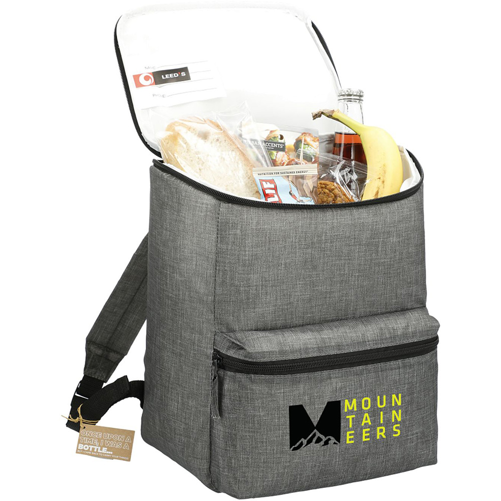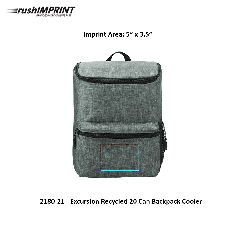 The Excursion Recycled Backpack Cooler is made from RPET. This backpack cooler features a large PEVA lined, zippered main compartment that's perfect for taking with you on a hike or picnic. The mesh side pocket makes carrying your water bottle an ease. Store essentials in the front zippered pocket. Get the perfect fit with the adjustable, padded shoulder straps. Through a partnership with 1% For The Planet one percent of sales of this and all EcoSmart products will be donated to nonprofits dedicated to protecting the planet. Material: Recycled 210d Polyester. Price includes one color, one location imprint.