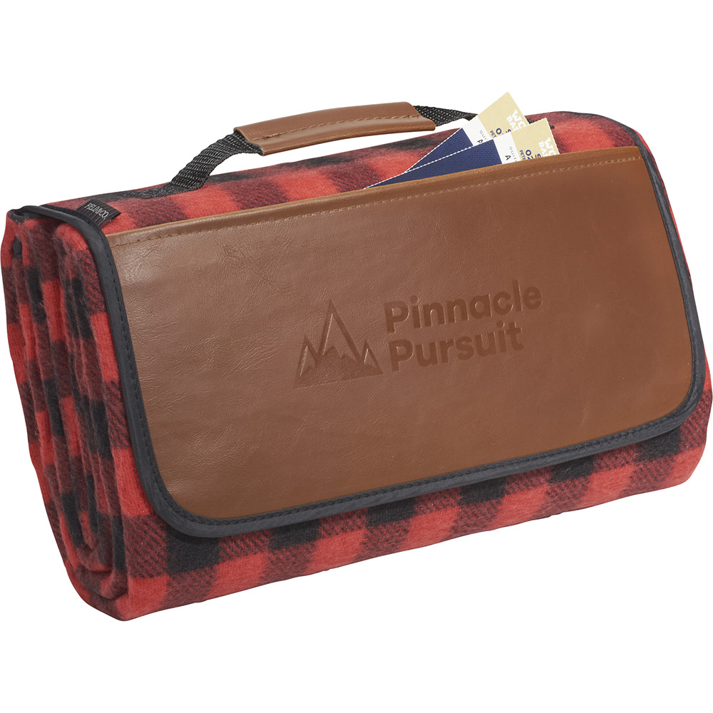 Make your picnic perfect with this Buffalo Plaid Field & Co. Picnic blanket. This blanket features comfortable polarfleece with foam padding and PEVA backing. The 10.5" x 4.5" pocket is perfect for storing mobile devices or any other picnic necessities. Blanket measures 47" x 53" unfolded and 7" x 12" folded. Material: Polyester Fleece.