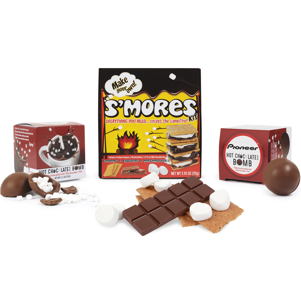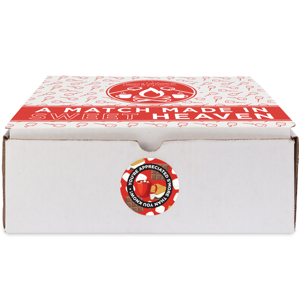 We paired our best-selling items to create this amazing Fireside Favorites Mailer Kit! Comes with one Make Your Own S'mores Kit and two Hot Chocolate Bombs. It's a match made in SWEET heaven! Top of mailer box exclaims "A Match Made In Sweet Heaven. Outside sticker states "You're Appreciated S'more Than You Know!" Comes packaged in a custom mailer box (stock design only as pictured), outside sticker and a customizable inside label. Price includes full color imprint.