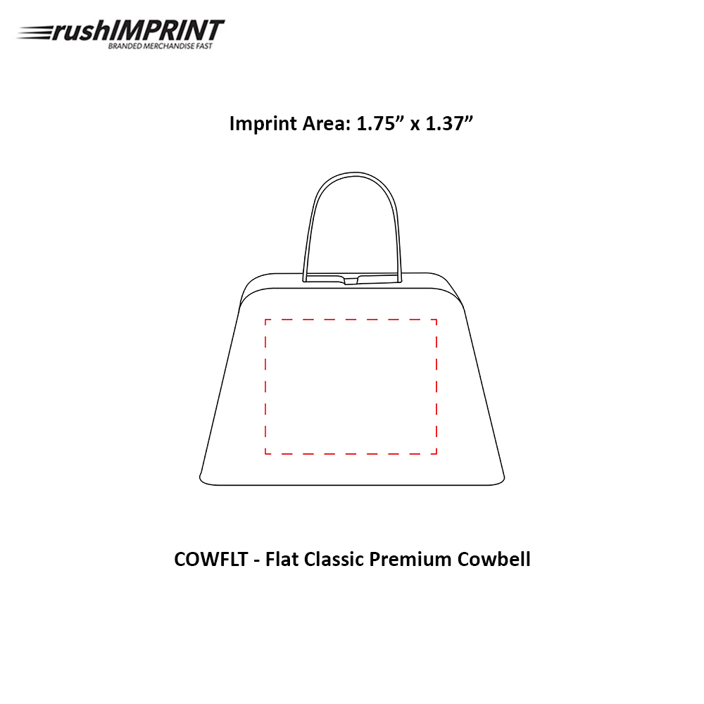 Another spin on your classic cowbell. Perfect for all of those sports games, prep rally's, and more to promote your brand! These "flat" cowbells are available in blue, white, black, red, green and orange. Price includes one color, one location imprint.