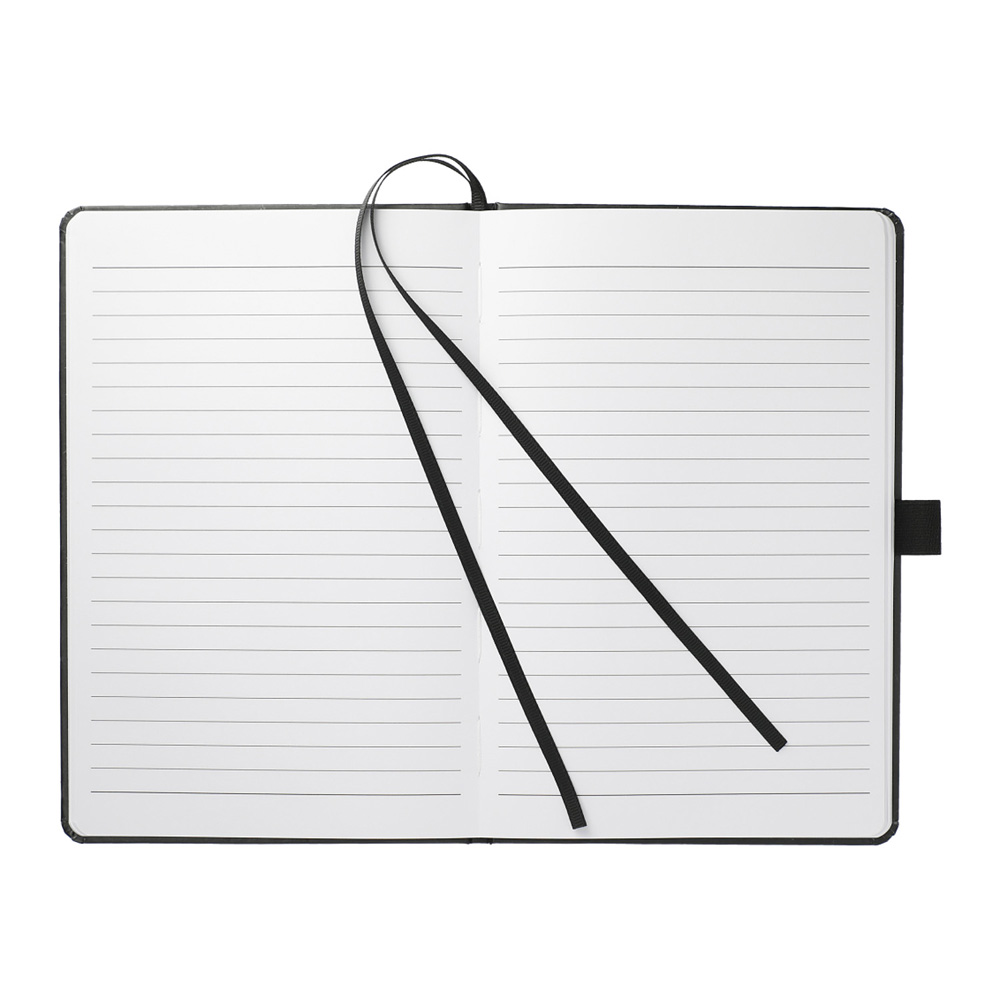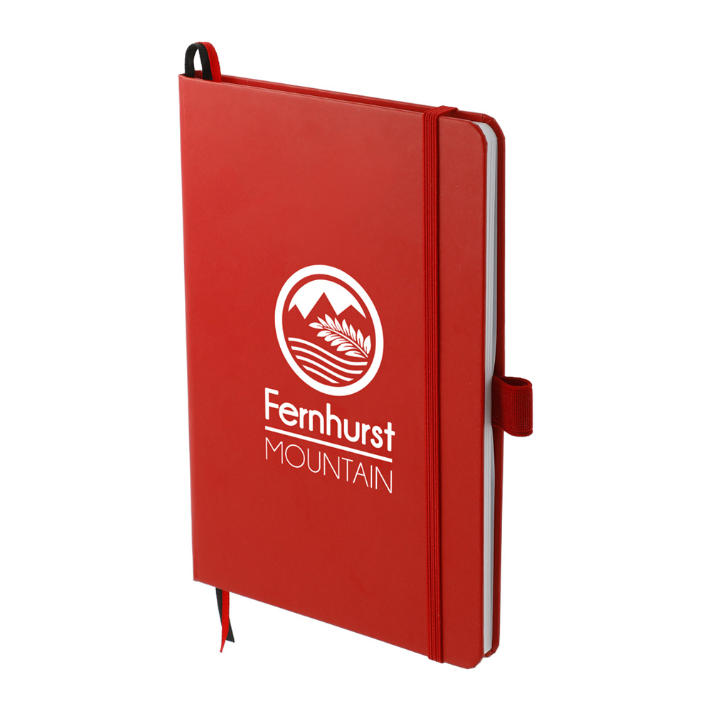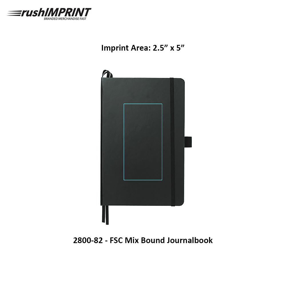The "5.5" x 8.5" FSC Mix Bound JournalBook® features a FSC-certified paper cover with 80 sheets of white FSC-certified, soy-based ink lined paper. Includes color-matching elastic closure, pen loop and ribbon page marker . Through a partnership with 1% For The Planet, one percent of sales of all EcoSmart® products are donated to environmental nonprofits.