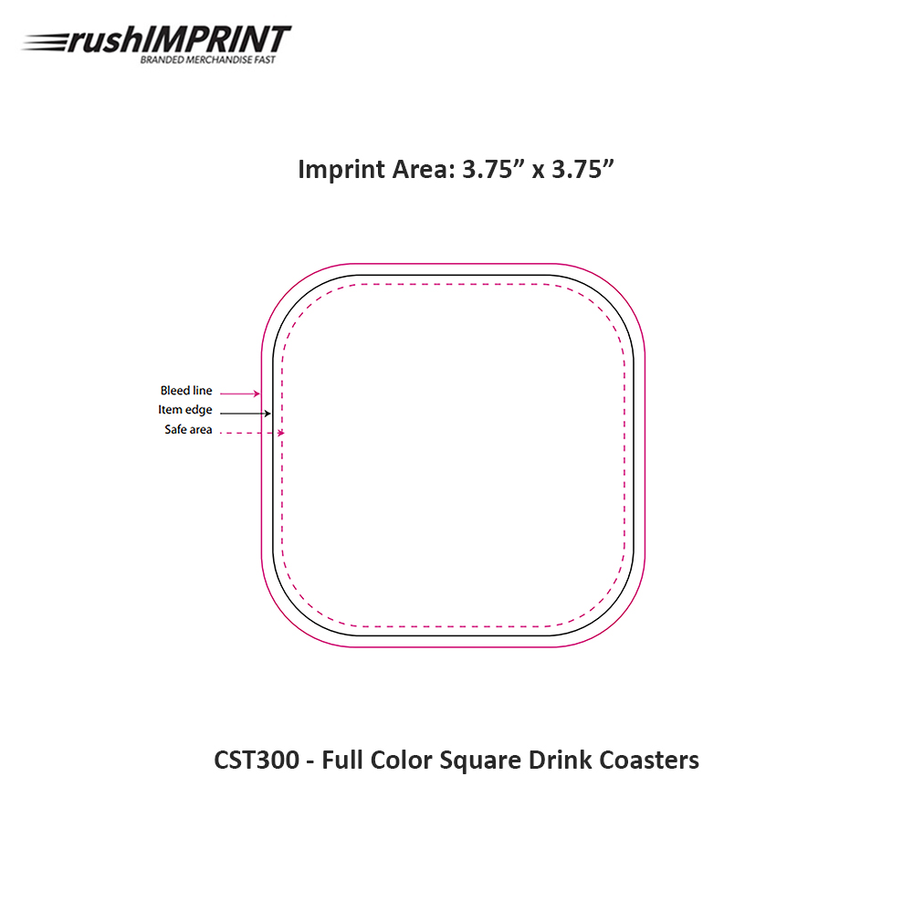 Square glossy white coaster. Vibrant full color full bleed imprint. Premium look and feel. Made of polyester-coated hardboard. Price includes full color imprint.