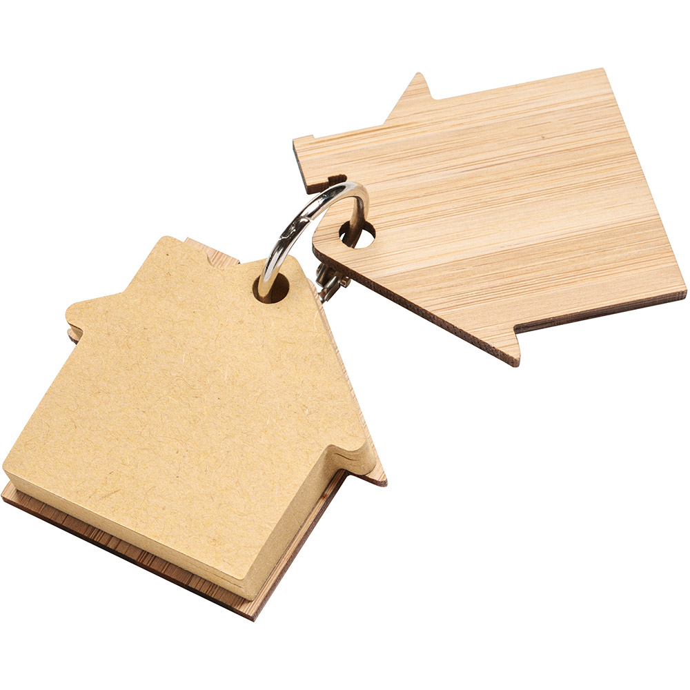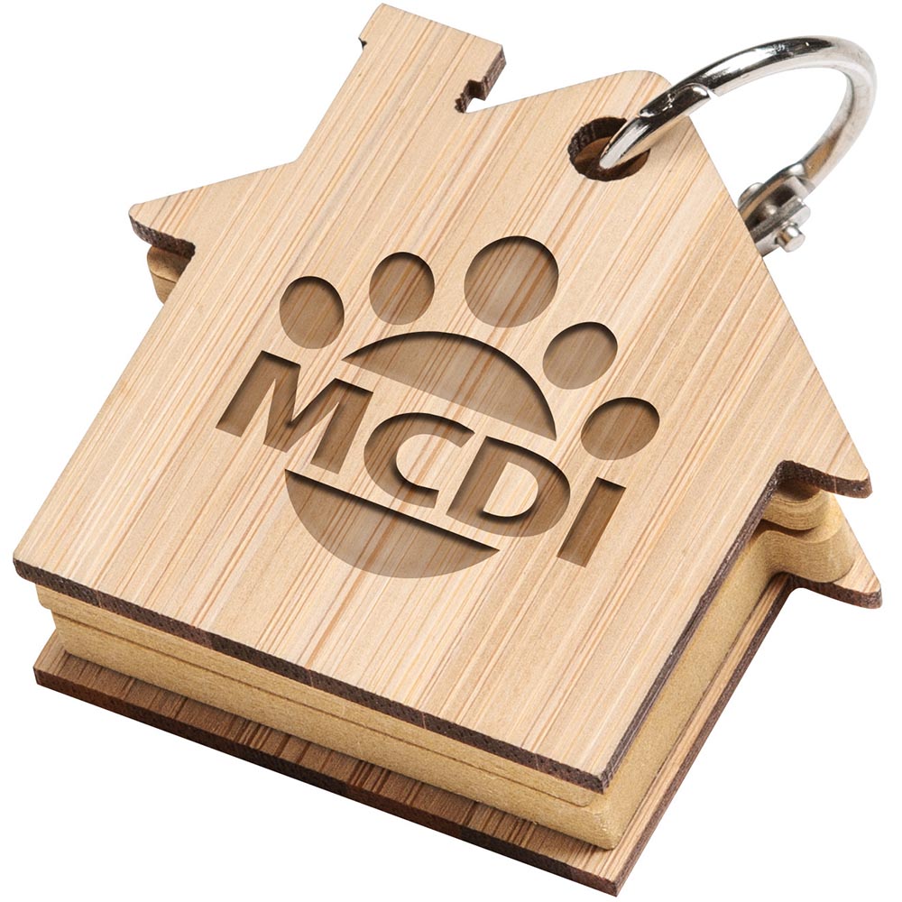 The Futuro Keychain with Sticky Notes features a house-shaped design that is perfect for the real estate industry! This keychain features sticky notes that are perfect for jotting down quick notes or memos. The outside cover is made of bamboo and can be laser engraved with your logo! Bamboo is an environmentally preferrable material due to its rapid growth and self-regeneration similar to grass.