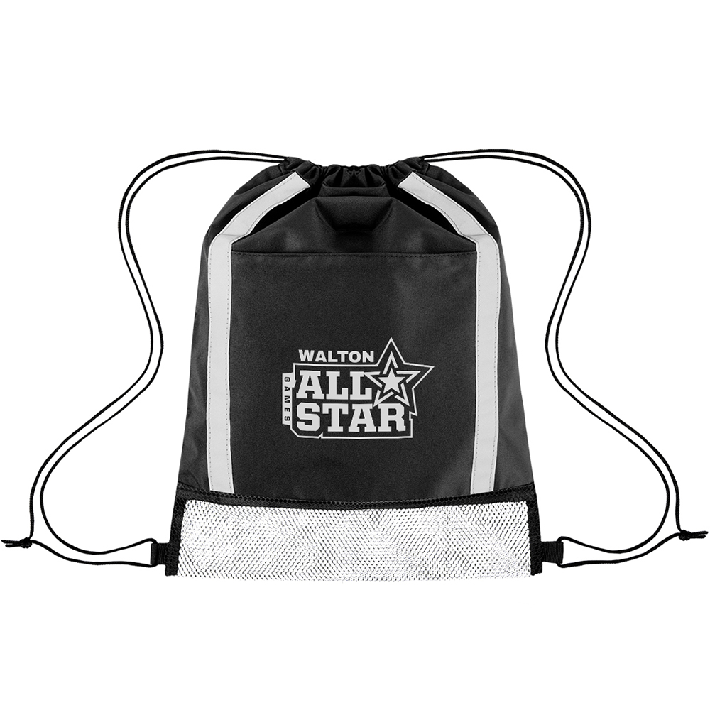 Made Of Combo: 600D rPET And Mesh. Made From Post Consumer Recycled Materials. Recycled Polyester (rPET) is Obtained By Melting Down Existing Plastic Bottles And Other Material Sources To Create New Polyester Fiber. Mesh, Webbing, Drawstring, Reflective Accents, Zipper And Label Are Not rPET. Reflective Strip Accents. Large Front Zippered Pocket. Mesh Back Side. Drawstring Closure. Spot Clean/Air Dry. Price includes one color, one location imprint.