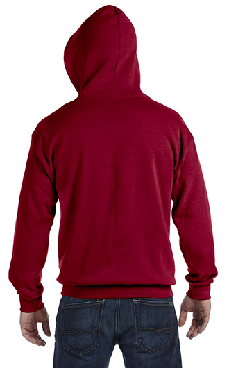 Fabric: 8 oz., 50% USA cotton, 50% polyester. Pill-resistant air jet yarn. Made with 50% sustainably and fairly grown USA cotton. Feature: Pill-resistant air jet yarn. Unlined hood. Set-in sleeves. Pouch pockets; hood with matching drawstring; YKK metal zipper. 1x1 ribbed cuffs and waistband with spandex; double-needle stitching throughout. Safety Orange is compliant with ANSI - ISEA 107 High Visibility Standards. Gildan's manufacturing process utilizes 45% renewable energy. Gildan's Community Investment Program supports education, the environment, humanitarian aid and active living in the communities we do business in. Deco Eligible. Price includes one color, one location imprint.