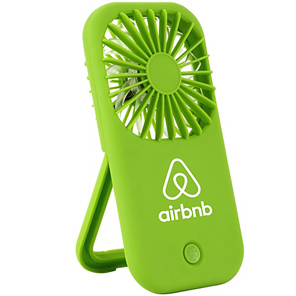 This is perfect for indoor or outdoor use, the personal fan can produce natural wind to keep you cool when reading, doing sports, waiting in line, and traveling. Flip out stand with two angle pitches. Push button to turn on/off. Includes 3 AAA batteries. Operates consistently for up to two hours. Price includes one color, one location imprint.
