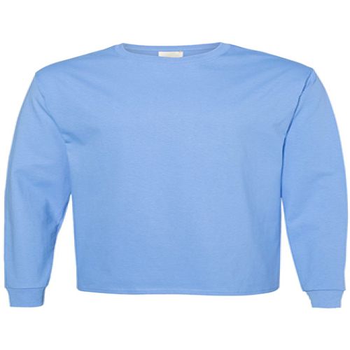 6 oz., 100% pre-shrunk cotton. Classic fit. Set-in 1x1 ribbed crewneck. Self-fabric neck tape for comfort. Double-needle bottom hem. Ribbed cuffs. Quarter turned body. Price includes a one color imprint on left chest.