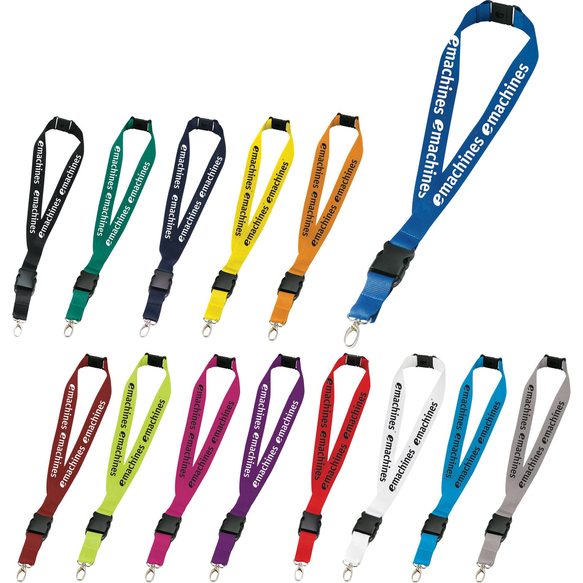 Features 14 color options! Imprint measures 0.63" x 10", Screen print. Free sample! Get FREE art proof emailed in 1 business day. 1-inch wide promotional lanyard includes breakaway neck clip and detachable plastic clip with wide metal swivel hook. Price includes 1 color imprint. Blank in stock. Product area 15" x 1" x 0.1" - 0.06 lbs. Order at rushIMPRINT.