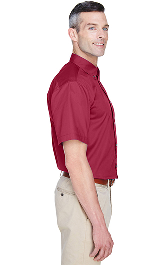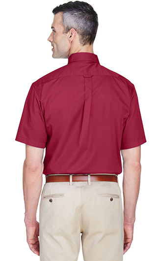 Fabric: 55% cotton, 45% polyester twill with stain-release. Wrinkle-resistant. Feature: Extra stitching at seams and buttons. Flat-felled seam finishing. Signature horn-style buttons with Harriton logo. Hemmed short-sleeves. Button-down collar. Left-chest pocket. Full back yoke and back pleat. Deco Eligible. Price includes embroidery up to 5k stitches.