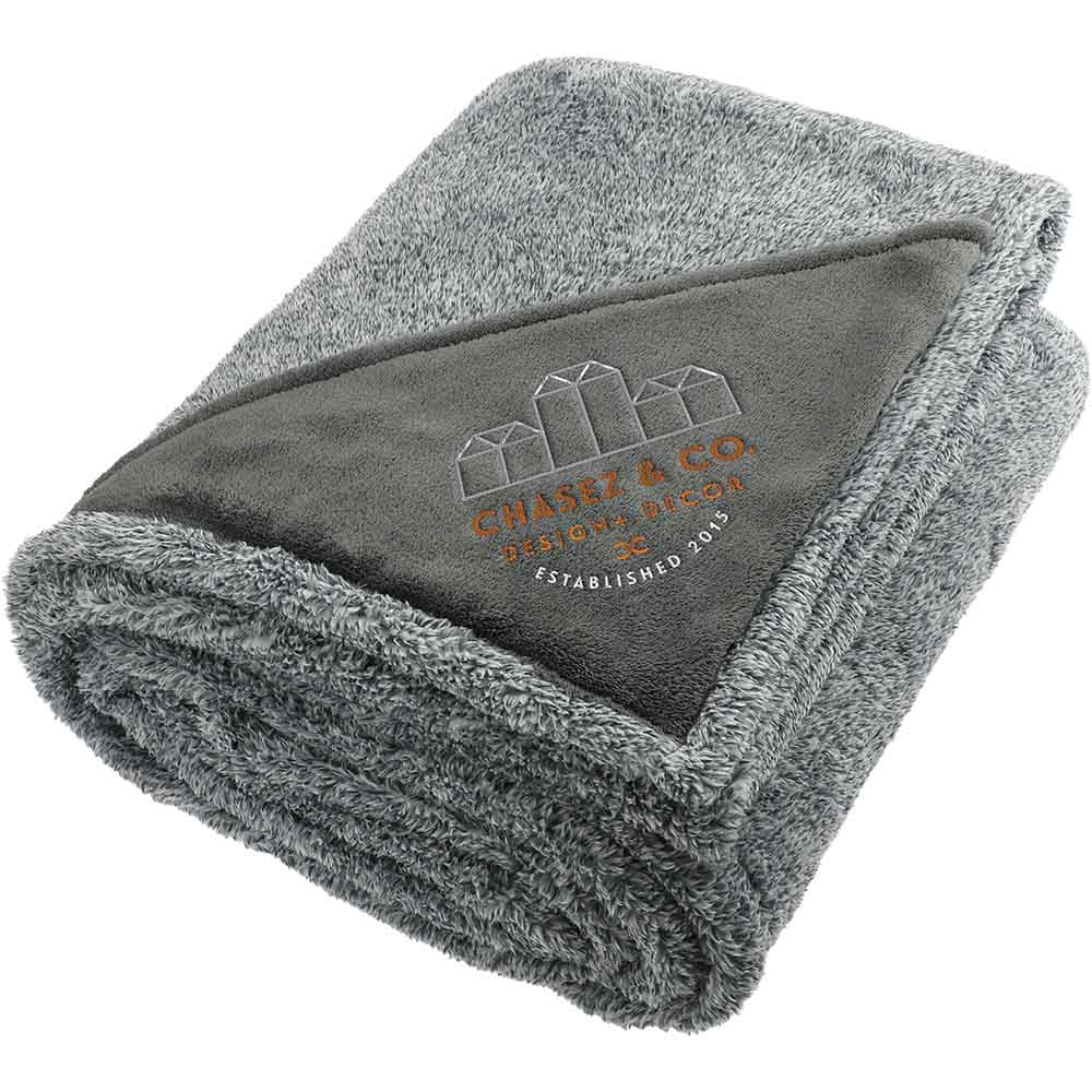 The long-threaded Heathered Fuzzy Fleece Blanket has a super-soft hand feel for extra comfort. Made with 240 gsm polyester, it's warm, cozy and makes an excellent addition to any room in your home or office. The multi-colored threads give it an on-trend heathered look, and the solid color triangle embroidery patch provides the perfect spot to show off your customer's logo. Measures 50" x 60" x 3/8" unfolded and 15" x 12 1/2" x 6" folded. This blanket is spot clean only.