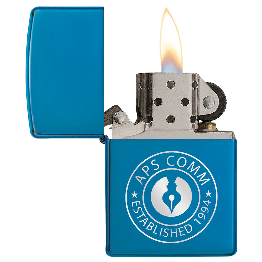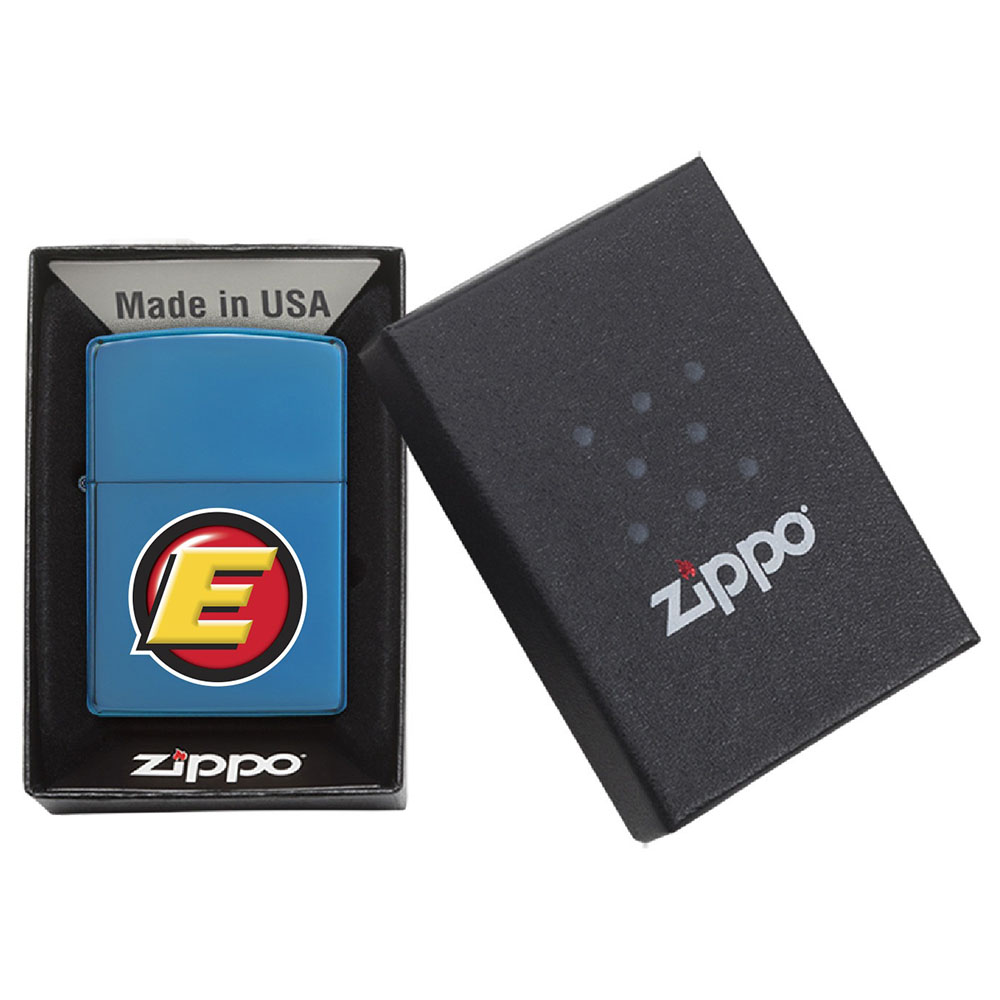A staple of the ZIPPO product line with a perfectly smooth high-polish blue finish that makes it versatile for imprinting. Backed by Zippo's Lifetime Guarantee. Made in USA. Packaged in a gift box. Lighter fluid not included due to shipping restrictions. Price includes full color imprint.