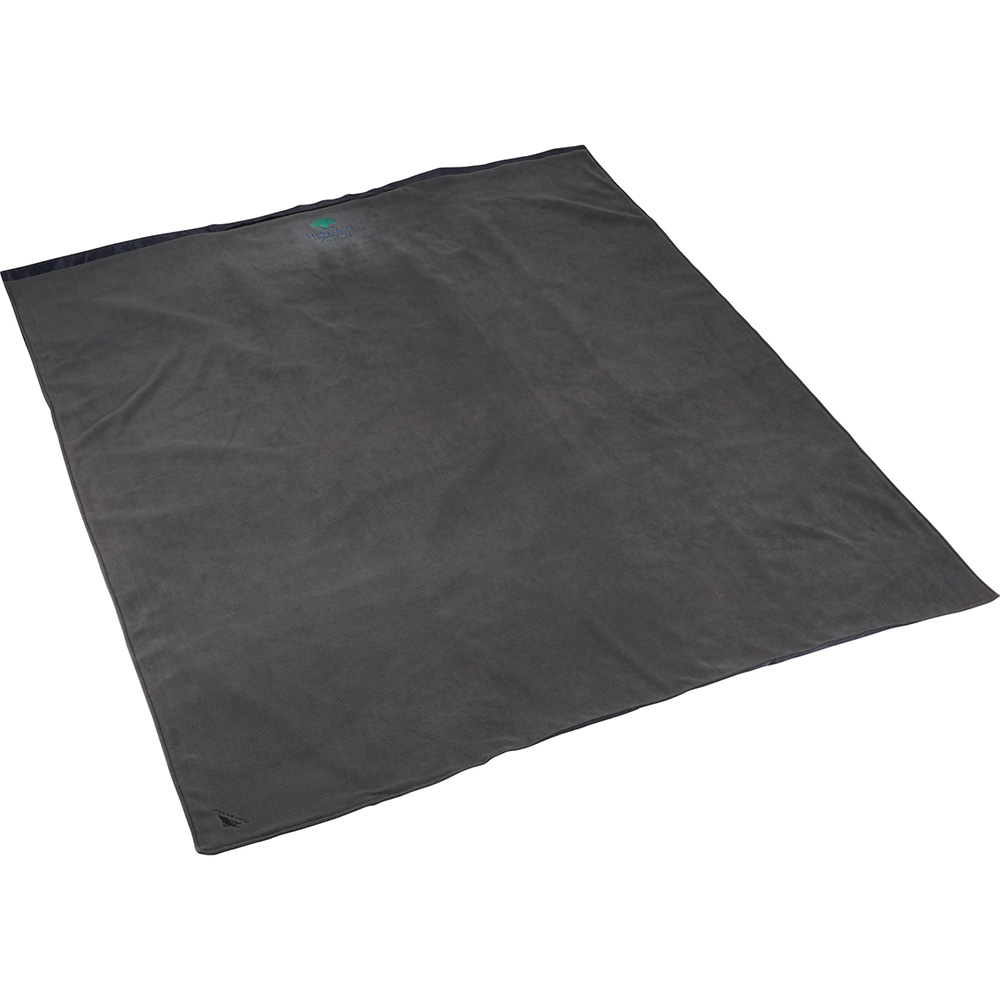Perfect for your next outdoor adventure this High Sierra exclusive design is a 60" x 70" oversize picnic blanket and made for the elements with water resistant durable ripstop and fleece interior. Comes with a carrying wrap and handle. Free run charges for embroidery up to 7500 stitches. The folded dimensions are 20" x 5". Material: Polyester Fleece.