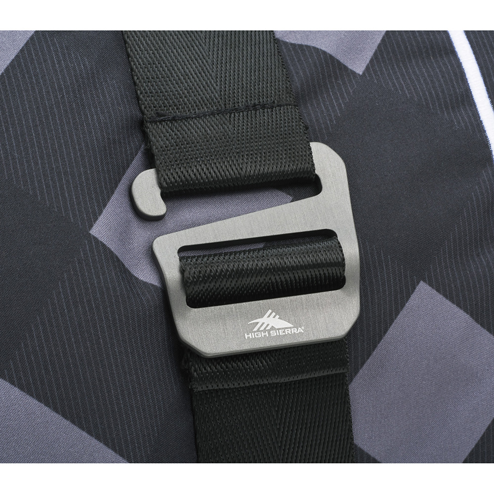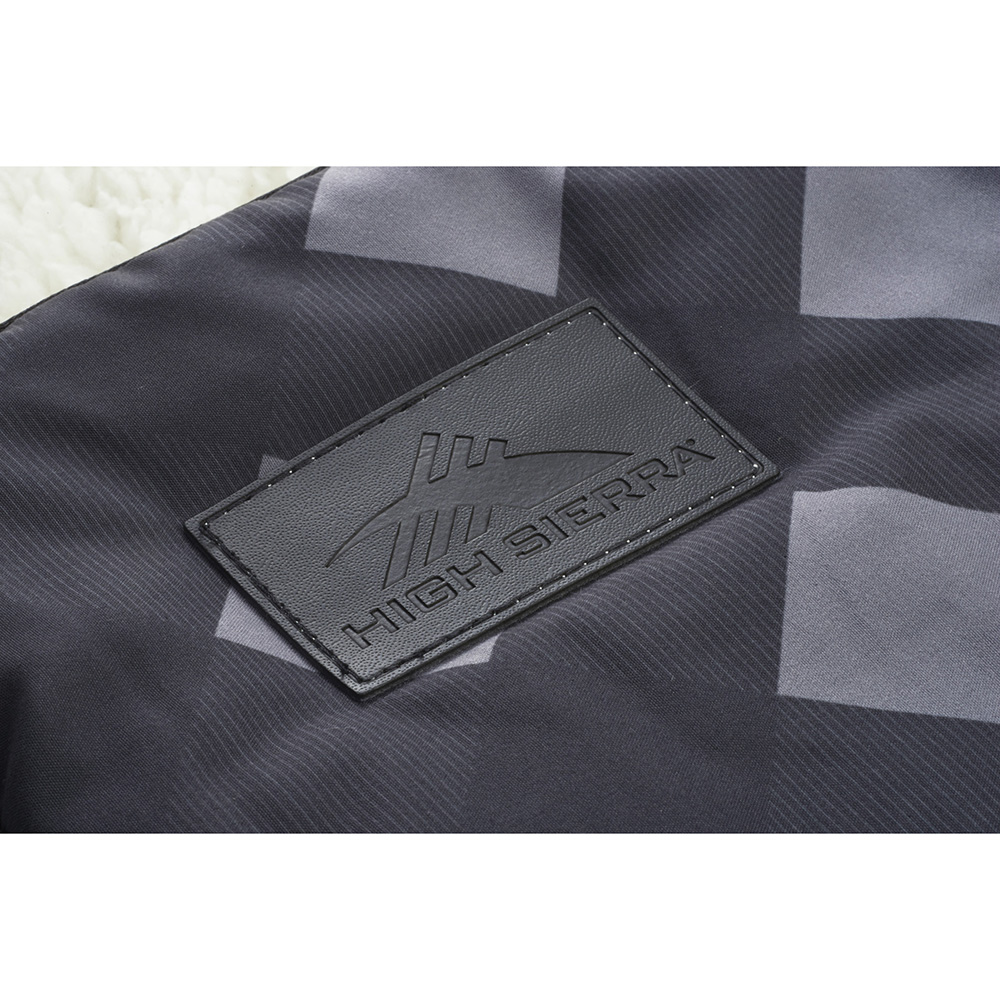 This High Sierra Roll-Up Puffy Sherpa Blanket is one of the warmest available due to a three-layer quilted design that makes it perfect for indoor and outdoor use. The top layer is water-resistant and features a stylish plaid design, the middle layer is cotton insulation, and the under layer is cozy Sherpa. Rolled up in a convenient package with nylon straps and laser engraved High Sierra aluminum clips, this blanket is great for travel. Blanket measures 50" x 60" unfolded and 10" x 14" folded. Blanket is spot clean only.