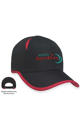 100% Lightweight Polyester. 6 Panel, Low Profile. Unstructured Crown & Pre-Curved Visor. No Top Button. 4 Jersey Mesh Vents For Breathability. Sweatband Is Woven Water Repellent Polyester. Velcro Closure With Clear PVC Pull Tag For Easy Adjusting.