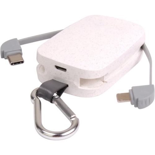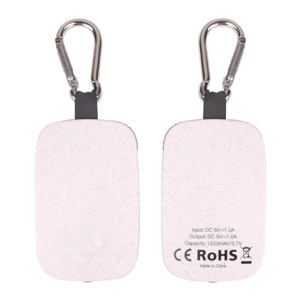 Convenient to carry with a key chain attachment, the P1200 3x Flip Wheat Straw Power Bank features a 1200 mAh battery and built-in lightning/Micro USB and Type-C connectors. The exterior is made of wheat straw, a byproduct of wheat, making this an eco-friendly product. The built-in cables free users from the hassle of carrying additional cords or adaptors. The battery is large enough to provide about a 50% charge to the average smartphone. As if the universal capabilities weren't enough, the P1200 Flip is also a flashlight. It's the perfect tech accessory for when you need a quick battery boost on the go. Price includes full color, one location imprint.