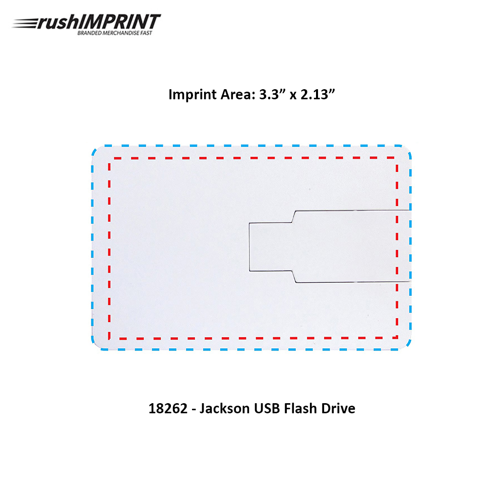 Pocket-sized and compact, the credit-card style of the Jackson USB Flash Drive design makes it convenient for slipping into a wallet or tucking into a portfolio at a tradeshow or convention. Functional, fun, and can be decorated on both sides with full-color imprinting. Price includes full color imprint.