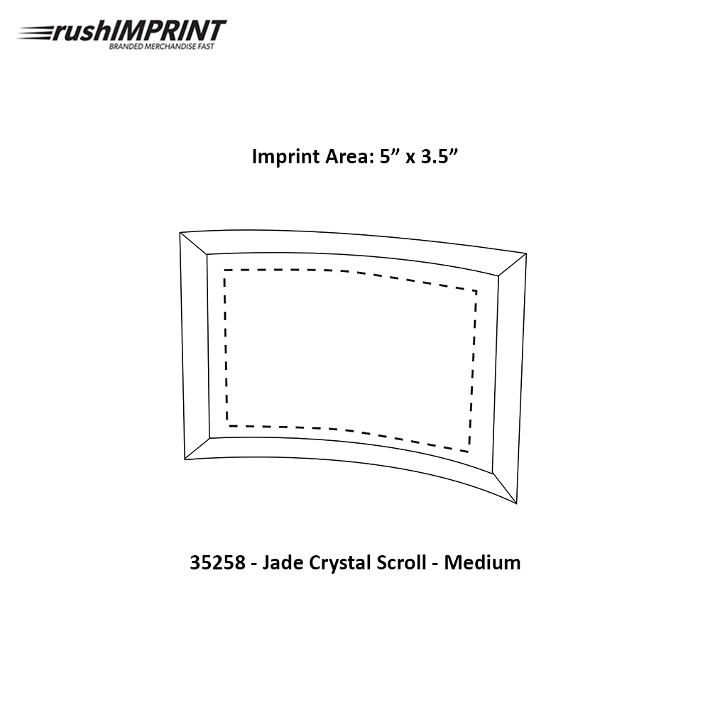 Model: 35258 Jade Crystal Scroll - Medium Product Description Show the success of the recipient to all using the Scroll Award. The clean and simple lines on this award will show your logo perfectly! Great desktop award. Material: Jade Glass. Price includes laser engraving. Size: 5"h x 6.5"w x 0.13"d Imprint Area: 3.5"h x 5"w Request A Virtual Proof Choose Quantity View Price Breaks Quantity Price 6 $66.36 12 $62.21 25 $58.06 100 $53.91 Enter quantity or drag slider. Minimum quantity is 6. Quantity: Price Each $66.36 Setup Charge: $0.00 Subtotal $398.16 Savings: $ over minimum qty pricing Choose Your Quantity Quantity Price 6 $66.36 12 $62.21 25 $58.06 100 $53.91 Standard Production Time: 7 business days Select Delivery Date Enter ZIP Code Apply Loading... Choose a Shipping Method -- Loading Shipping Prices -- Customize it! Upload Your Art Now Or Send it Later. Select Imprint Color(s) Back to Edit Product Color And Quantity Where on the item should we print your design? 5" x 3.5" Available print design areas 5" x 3.5" Quantity: 6 Add Your Artwork Add Artwork Add Now Send After Checkout Don’t have artwork? That’s ok! Artwork is not required to start a job. Simply skip this step and email us artwork later (helpdesk@claytonkendall.com). If you need assistance with your art, our designers can help with that too! Will I be able to approve my design before it goes into print? Yes! You will receive a digital mock-up of your artwork on this item within a few hours of placing your order. We will send your order into production only after you approve the mock-up. Only Image Aa Only Text Aa Text/Image Contact Us Enter Your Text Choose file Uploading logo. Please wait... Personalize your design by adding text and customizing its shape with a curve. Upload your logo to give it a professional touch, and combine these elements to create a one-of-a-kind design that’s uniquely yours. Open Product Designer Don’t have artwork? That’s ok! Artwork is not required to start a job. Simply skip this step and email us artwork later. If you need assistance with your art, our designers can help with that too! Will I be able to approve my design before it goes into print? Yes! You will receive a digital mock-up of your artwork on this item within a few hours of placing your order. We will send your order into production only after you approve the mock-up. Free art proof will be emailed with every order within one business day Total (loading...) qty x Set Up Shipping Cost Rush Charge Custom Fields Hazmat Fee Estimate arrival Savings Add to Cart Updating Price...