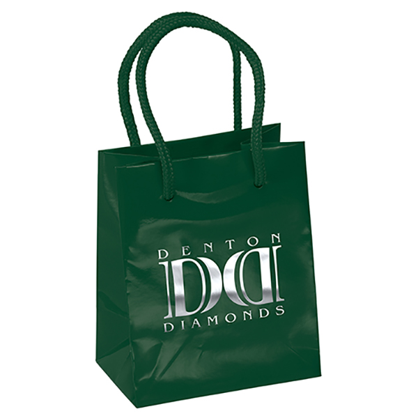 Jazz up your gift packaging with a glossy sheen and bold color! This 128 GSM premium-weight gloss-laminated eurotote features matching macram. Price includes a one color foil print, one location imprint. Free Proof prior to production.