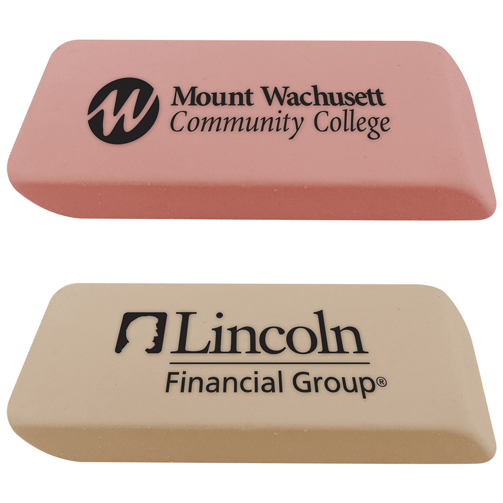 Rectangular latex-free rubber eraser Price includes one color, one location imprint.