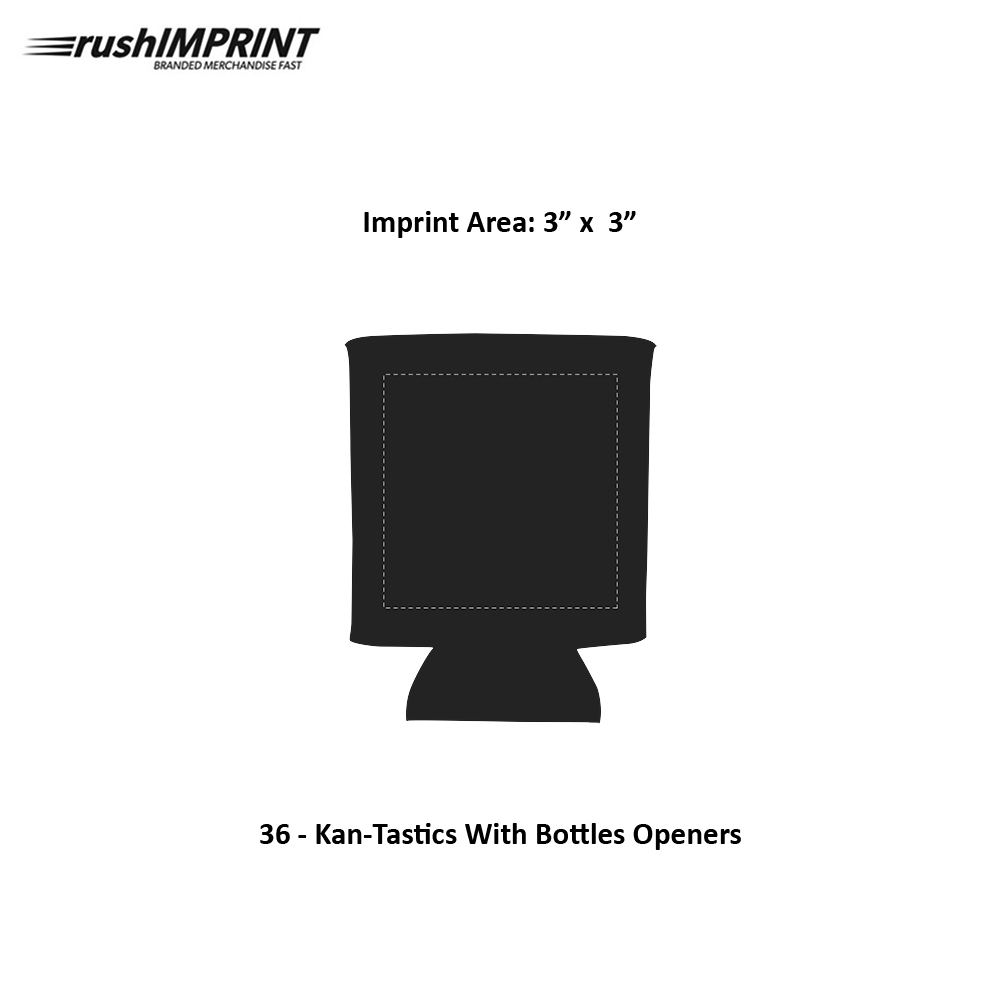 Model: 36 Kan-Tastics With Bottles Openers Product Description Made Of Laminated Open Cell Foam. Folds Flat For Pocket Or Purse Storage. Plastic Bottle/Can Opener With Bead Chain Attachment. Elastic Strap For Bottle Opener Storage. Black Bottle Opener. Price includes one color, one location imprint. Size: 4"h x 3.33"w x 0.5"d Imprint Area: 3"h x 3"w Request A Virtual Proof Request A Free Sample Select Color Red Black Navy Royal Blue Choose Quantity View Price Breaks Quantity Price 100 $1.14 250 $1.07 500 $1.00 1000 $0.96 2500 $0.93 Enter quantity or drag slider. Minimum quantity is 100. Quantity: Price Each $1.14 Setup Charge: $40.00 Subtotal $154.00 Savings: $ over minimum qty pricing Choose Your Quantity Quantity Price 100 $1.14 250 $1.07 500 $1.00 1000 $0.96 2500 $0.93 Standard Production Time: 7 business days Need it Faster? No Thanks 1 Day Production ($50.00) Select Delivery Date Enter ZIP Code Apply Loading... Choose a Shipping Method -- Loading Shipping Prices -- Customize it! Upload Your Art Now Or Send it Later. Select Imprint Color(s) Back to Edit Product Color And Quantity Where on the item should we print your design? 3" x 3" Available print design areas 3" x 3" What imprint Color(s) would you like? (Maximum # of Imprint Colors: 2) Black White Royal Blue Navy Blue Reflex Blue Light Blue Process Blue Teal Kelly Green Forest Green Lime Green Red Burgundy Maroon Orange Burnt Orange Yellow Athletic Gold Purple Pink Gray Brown Tan Black White Royal Blue Navy Blue Reflex Blue Light Blue Process Blue Teal Kelly Green Forest Green Lime Green Red Burgundy Maroon Orange Burnt Orange Yellow Athletic Gold Purple Pink Gray Brown Tan Add Additional Imprint Color Product Color: Select product color Quantity: 100 Add Your Artwork Add Artwork Add Now Send After Checkout Don’t have artwork? That’s ok! Artwork is not required to start a job. Simply skip this step and email us artwork later (helpdesk@claytonkendall.com). If you need assistance with your art, our designers can help with that too! Will I be able to approve my design before it goes into print? Yes! You will receive a digital mock-up of your artwork on this item within a few hours of placing your order. We will send your order into production only after you approve the mock-up. Only Image Aa Only Text Aa Text/Image Designer Contact Us Enter Your Text Choose file Uploading logo. Please wait... Personalize your design by adding text and customizing its shape with a curve. Upload your logo to give it a professional touch, and combine these elements to create a one-of-a-kind design that’s uniquely yours. Open Product Designer Don’t have artwork? That’s ok! Artwork is not required to start a job. Simply skip this step and email us artwork later. If you need assistance with your art, our designers can help with that too! Will I be able to approve my design before it goes into print? Yes! You will receive a digital mock-up of your artwork on this item within a few hours of placing your order. We will send your order into production only after you approve the mock-up. Free art proof will be emailed with every order within one business day Total (loading...) qty x Set Up Shipping Cost Rush Charge Custom Fields Hazmat Fee Estimate arrival Savings Add to Cart Updating Price...
