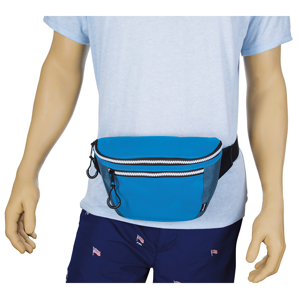 Keep your drinks cool while also looking cool in this insulated fanny pack! Main zippered compartment. Front zippered pocket. Adjustable waist strap with buckle closure. Heat-sealed PEVA liner. Keeps cool with ice packs.