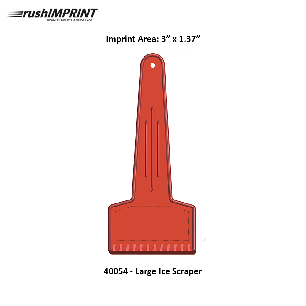 Break-resistant plastic. Scraping edge will not mark glass. Convenient size. Hole for hanging. Price includes hot stamp.