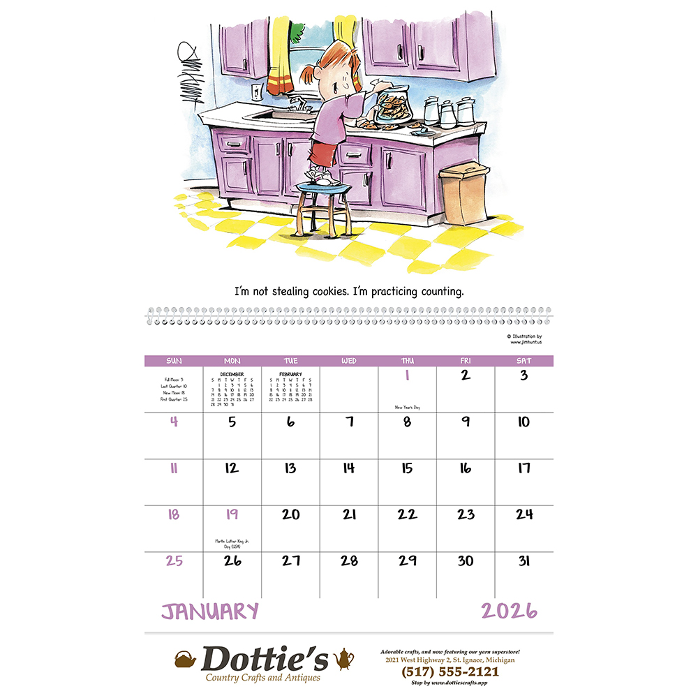 Add comedy to your life by taking advantage of this humorous calendar to look at the joys of family life with new art by Jim Hunt. The FSC® label means that the materials used for this product come from well-managed FSC®-certified forests and other controlled sources.
