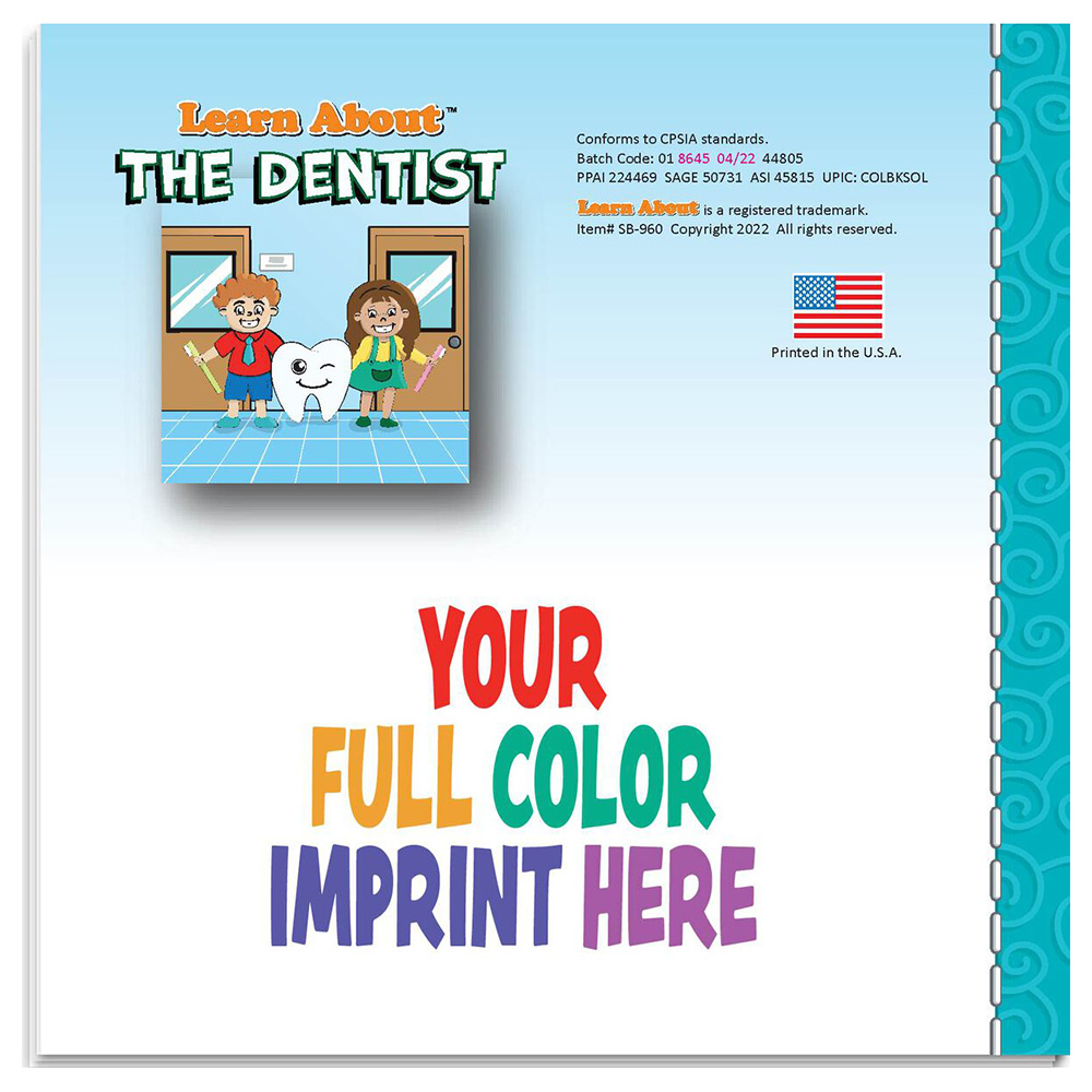Dental. Children. Healthy Teeth. Orthodontist. New! Learn About Storybook series - The Dentist. A fun and educational story book for children. Helps kid understand who the dentist is and what it means to keep your teeth clean and have regular checkups. 12 page, soft cover book. Full color imprint on the back cover. Price includes full color imprint.