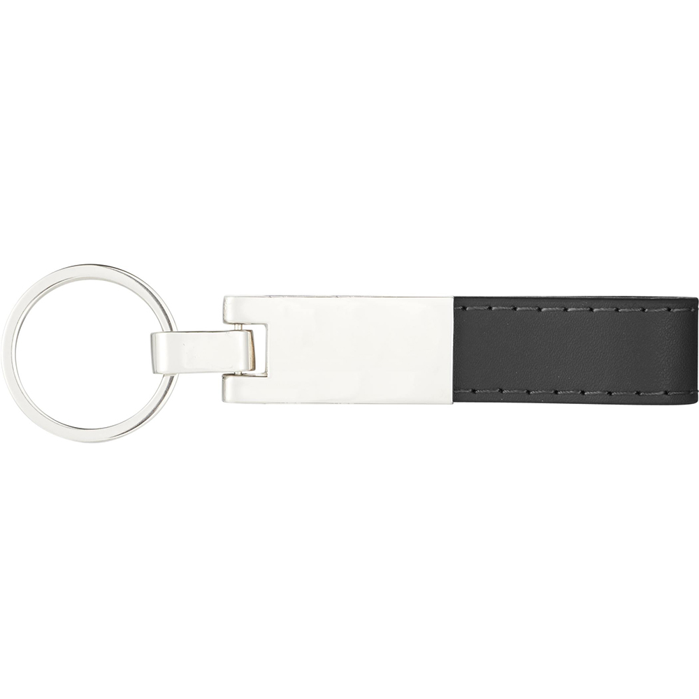 The classic design of this key ring is certain to make it a well appreciated and often used gift. Your logo or promotional message goes on the sliver-plated connector that joins the leather strap to the key ring. Promotional keychain measures 0.25" x 0.75" x 3.44" - 0.13 lb. Imprint dimensions: 0.63" x 1". Price includes laser engraving. Order a minimum of 75 custom key chains. Free one day production. Free art proof will be emailed with every order within one business day. No duties, no fees!