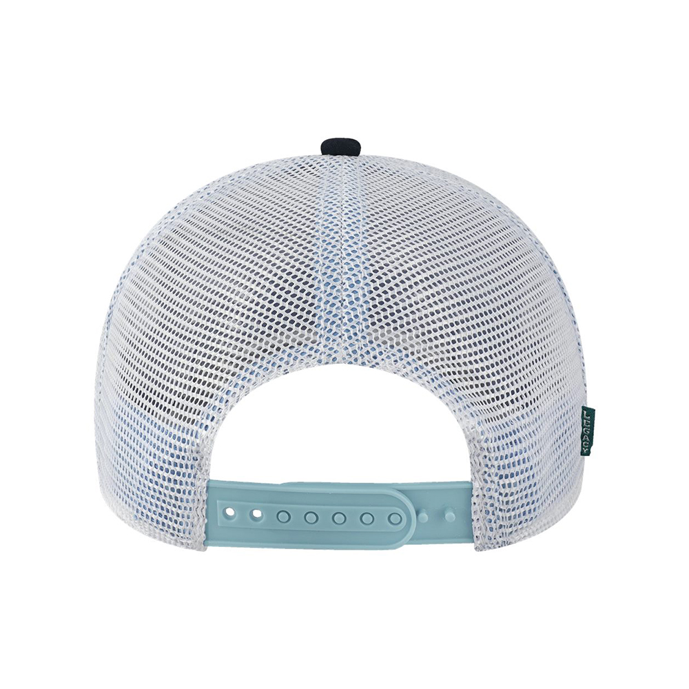 65/35 cotton/polyester. Heather Grey is 10/55/35 wool/acrylic/polyester. Melange colors are 75/25 cotton/rayon. Mesh back. Structured, six-panel, mid-profile. Slightly curved visor, visor board transitioning to recycled content. Snapback closure. Price includes embroidery.