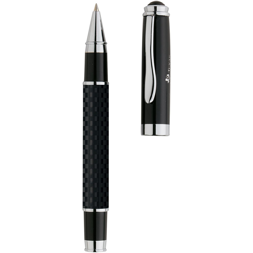 The Luna Roller Ball is constructed from quality brass materials and features a high-gloss black enamel upper barrel with carbon fiber detailing on its lower barrel. It has a cap-off design and is highlighted with polished chrome accents. The Luna includes a premium black ink cartridge, which flows smoothly with the roller ball tip for an enjoyable writing experience. Material: Brass. Classic roller ball pen tip. Comes ready to write with premium black ink. Glossy black enamel top barrel. Carbon fiber accents on bottom barrel. Shiny chrome detailing. Cap-off design.
