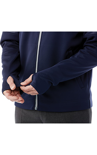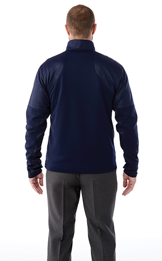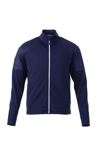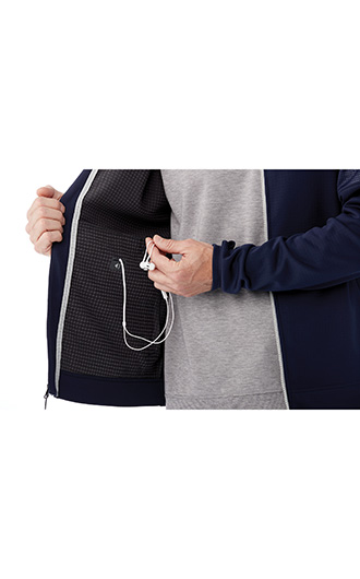 The Mens Senger Knit Jacket combines comfort and technical performance for maximum versatility. This sophisticated, innovative jacket features two color contrast zipper details, sleeve cuffs with thumb exits for comfort and an interior media pocket to keep devices handy. A subtle graphic detail on the shoulder creates a distinctive look. Material: 100% Polyester interlock knit with matte finish bonded to 100% Polyester brushed grid pattern knit, 220 g/m² (6.5 oz/yd²). CONTRAST: 100% Polyester graphic pattern interlock knit with matte finish bonded to 100% Polyester brushed grid pattern knit. Price includes one color, one location imprint.