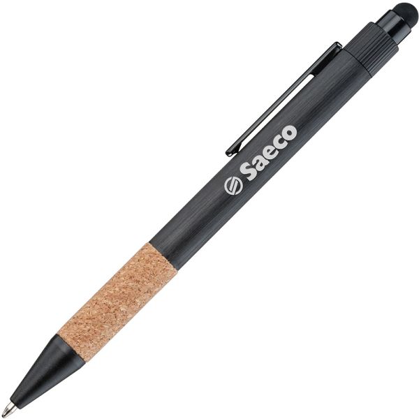 The Manuel Recycled Aluminium Pen is your go-to eco-friendly writing instrument! Featuring a touch stylus at the top, natural cork grip, metal clip, and recycled aluminum body, this pen offers style and comfortability.