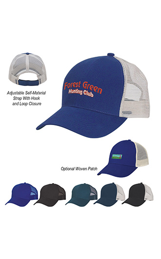 100% Brushed Cotton Twill Crown. 6 Panel, Medium Profile. Structured Crown & Pre-Curved Visor. Mesh Back With Hook And Loop Closure.