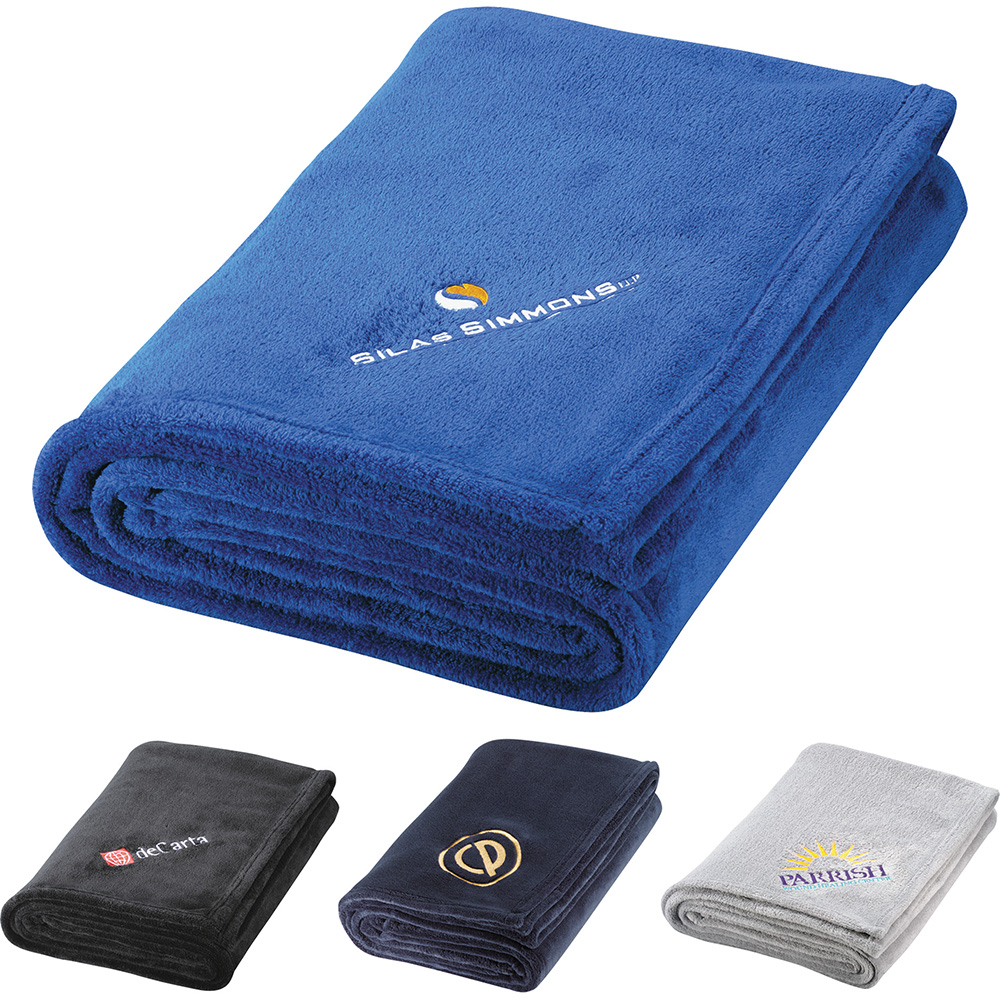 This extra plush soft micro coral plush blanket is perfect to cuddle up with. Free run charges for embroidery up to 7500 stitches. The open dimensions are 50" x 60" and the folded dimensions are 12.5" x 12". MATERIAL: Polyester Fleece.