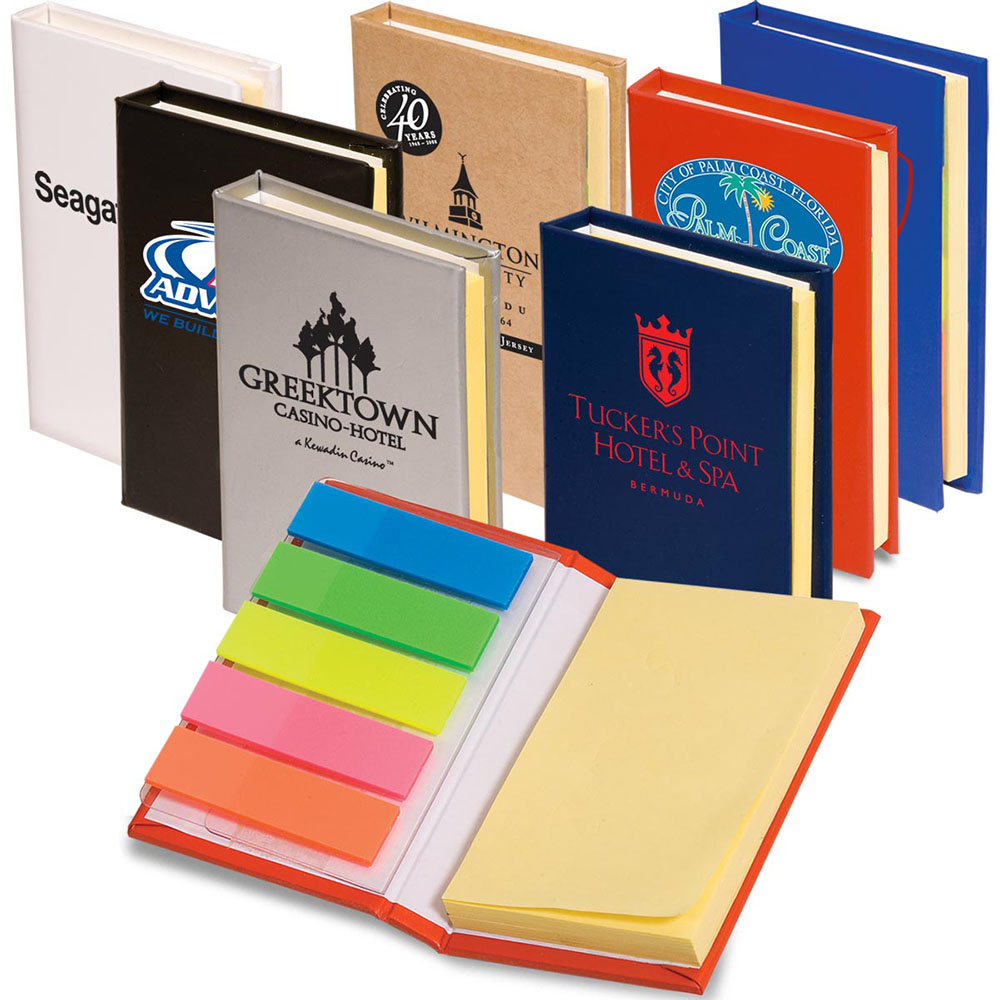 Micro Sticky Note Pad with 2" x 3" Post-It notes and 5 neon sticky page markers. Here's a miniature version of the popular sticky book with ample space on the front for imprinting. Sticky book can be deployed as a memorabilia for schools, companies and organizations. Price includes one location, full color imprint.