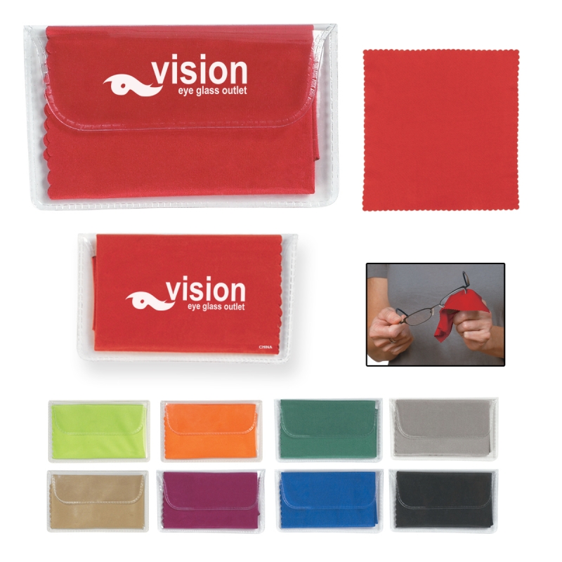 6 inch W x 6 inch H Cloth. 220 Gram Microfiber. Great for Cleaning Sunglasses or Computer Screens.