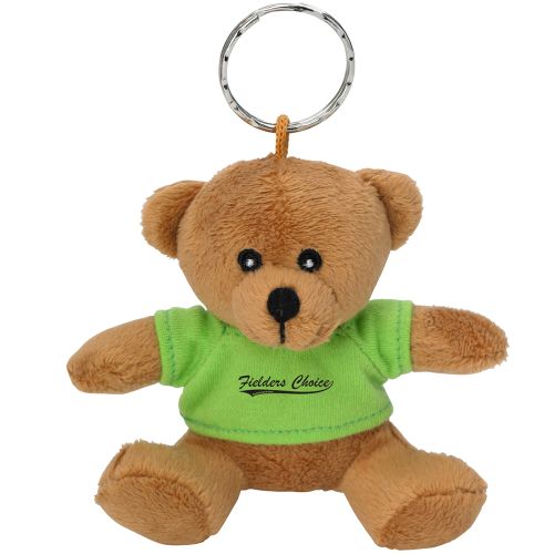 Keep cuteness at your fingertips with this 3 1/2" Teddy Bear custom key chain! 8 Popular Shirt Colors. Split Ring. Price includes one color imprint, one location. Minimum order of 25 personalized key chains. Imprint area 0.63" x 1". Product height: 3.5" and Weight: 0.07 lbs.